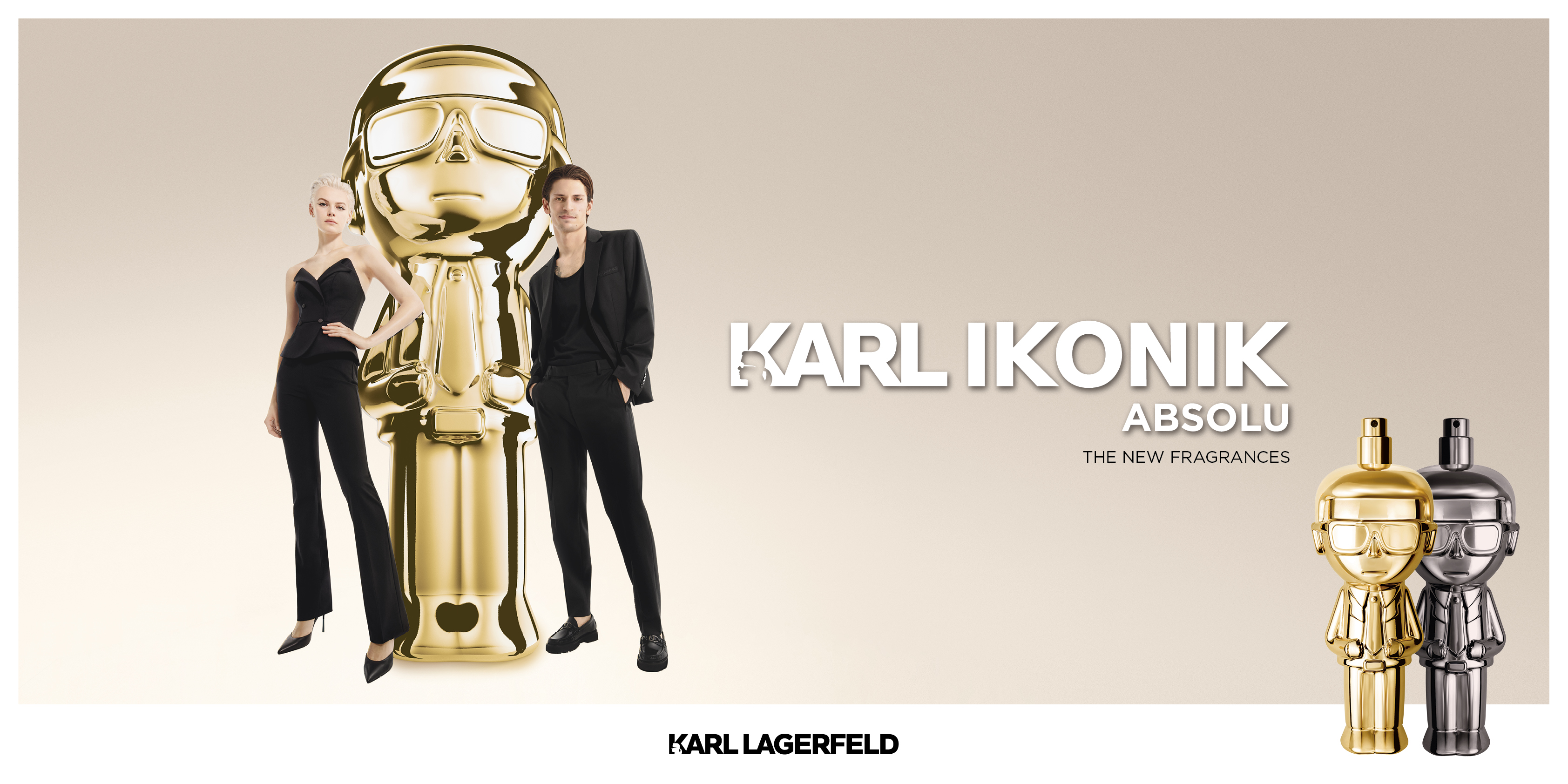Karl Ikonik Absolu for Him, una moderna combinación de notas amaderadas y especiadas, revela una firma olfativa audaz e icónica. -